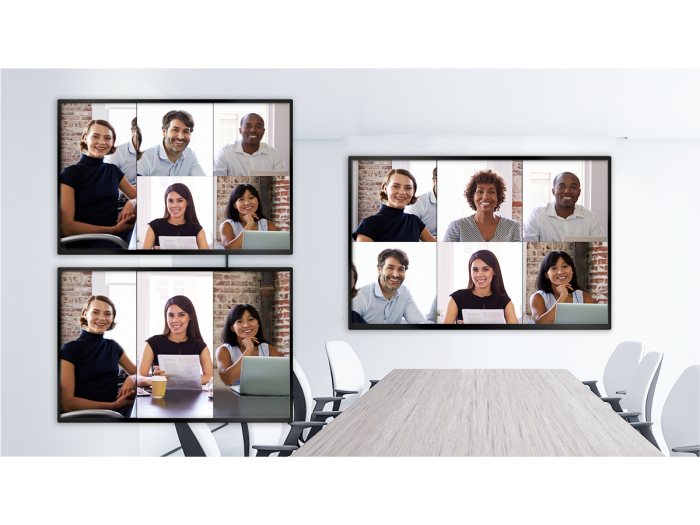Por último, el ángulo de visión de 84,5°, combinado con la tecnología SmartFrame, permite encuadrar de forma inteligente a los participantes (hasta 7 m de distancia) ajustando automáticamente el campo de visión para que siempre queden incluidos en el encuadre, independientemente de dónde se encuentren en la sala. Sin necesidad de mando a distancia.