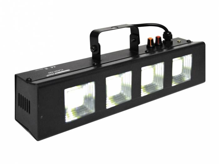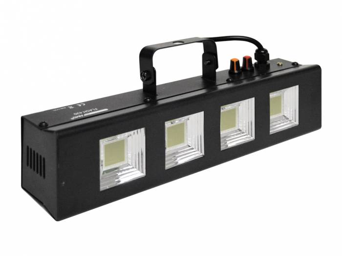FLASH 420 MKII es un efecto flash que incluye 4 LEDs tipo COB de color blanco de 20W cada uno. Estos potentes LEDs permiten obtener un homogéneo y brillante tono blanco. El dispositivo incluye dos controles con el fin de seleccionar el modo de funcionamiento y la velocidad del efecto flash. FLASH 420 MKII puede funcionar manualmente, controlando la velocidad del flash, o en modo audio.