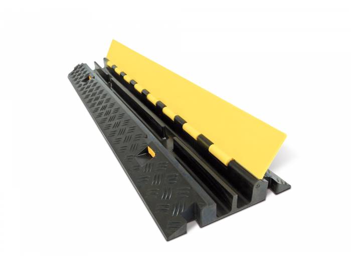 Pasacables fabricados en TPU con textura antideslizante. Incorpora 2 carriles internos. La tapa con sistema de bisagra cubre perfectamente la unidad y el acceso a los cables una vez colocado. Su diseño con solapas macho/hembra, permite configurar sistemas de pasacables de cualquier longitud simplemente añadiendo más unidades.